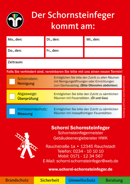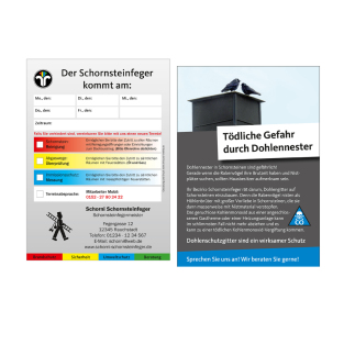 Die Anmeldezettel erhalten Sie für Schornsteinfeger/in und Kaminkehrer/in - inklusive Erstgestaltung mit Ihren Kontaktdaten und einer Änderung