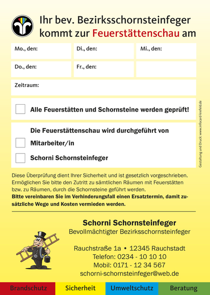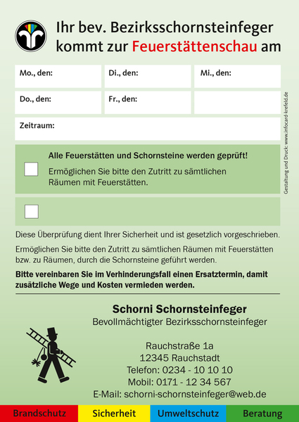 Die Anmeldezettel erhalten Sie für Schornsteinfeger/in und Kaminkehrer/in - inklusive Erstgestaltung mit Ihren Kontaktdaten und einer Änderung
