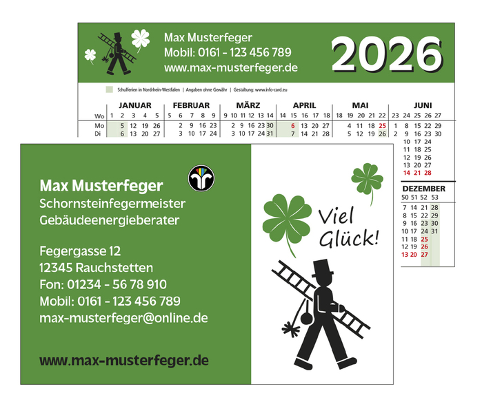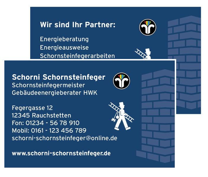 Wir gestalten Ihre individuelle Visitenkarte nach Ihren Vorstellungen mit Ihrem Logo, Bildern und Texten gegen Aufpreis - sprechen Sie uns gerne an!